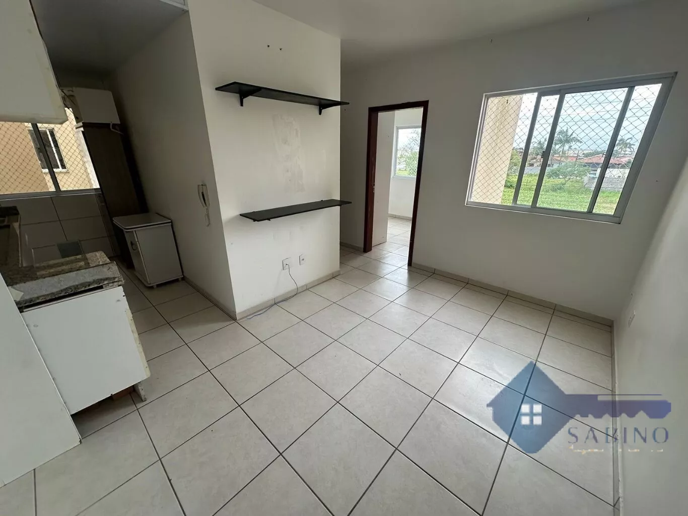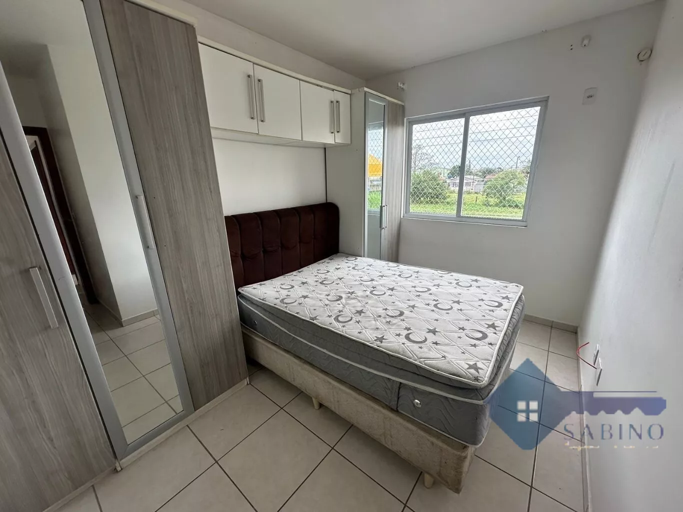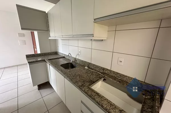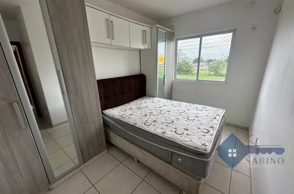 A sala de estar conta com uma janela bem ventilada, proporcionando um ambiente agradável e iluminado. A cozinha está equipada com armários planejados, garantindo praticidade no dia a dia. O dormitório de casal encontra-se completamente mobiliado, enquanto o quarto de solteiro está parcialmente mobiliado, oferecendo espaço e organização.