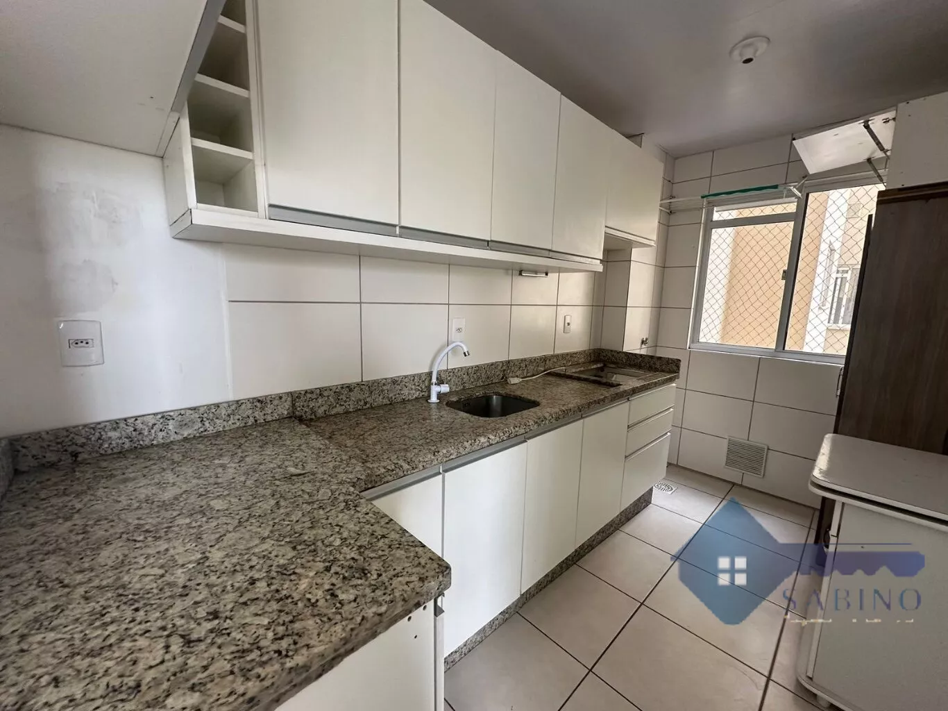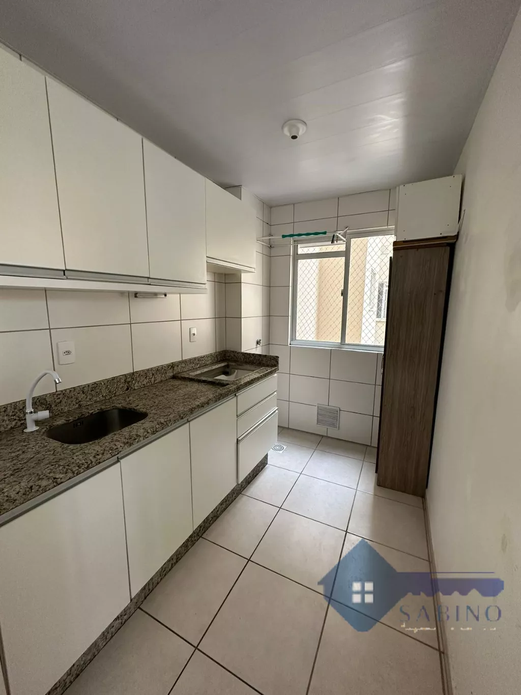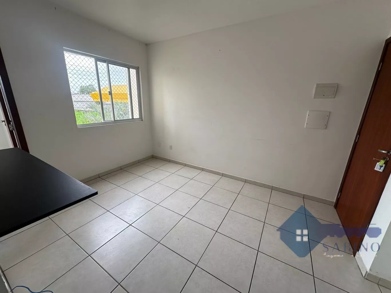 A sala de estar conta com uma janela bem ventilada, proporcionando um ambiente agradável e iluminado. A cozinha está equipada com armários planejados, garantindo praticidade no dia a dia. O dormitório de casal encontra-se completamente mobiliado, enquanto o quarto de solteiro está parcialmente mobiliado, oferecendo espaço e organização.