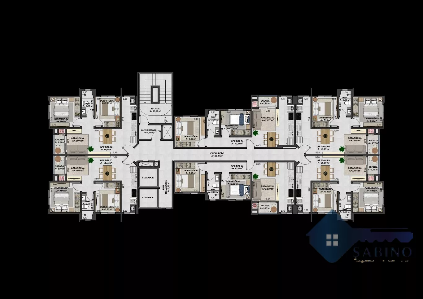 Com seis apartamentos por andar, o empreendimento foi planejado para oferecer privacidade e praticidade, com espaços bem distribuídos e acabamento de alto padrão.
